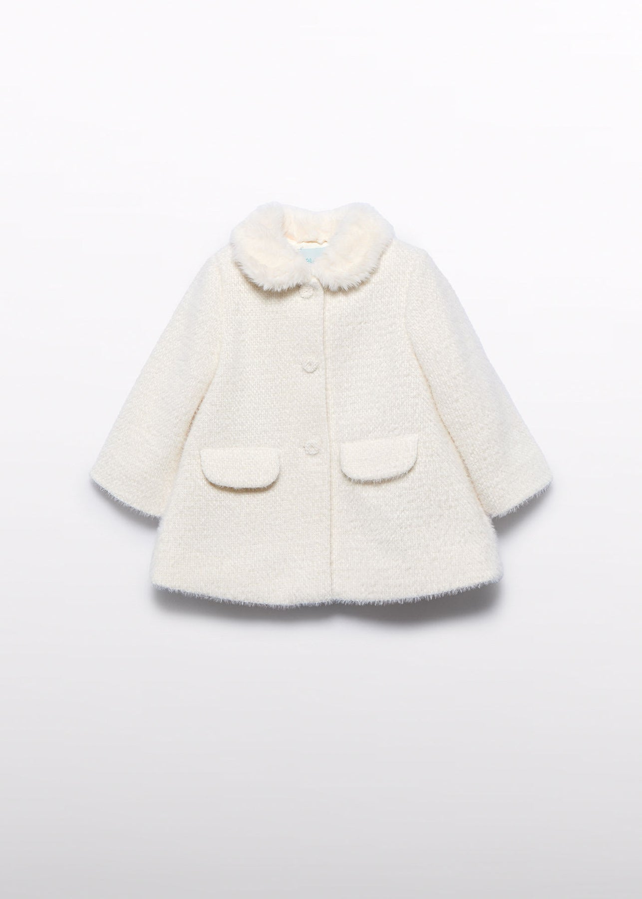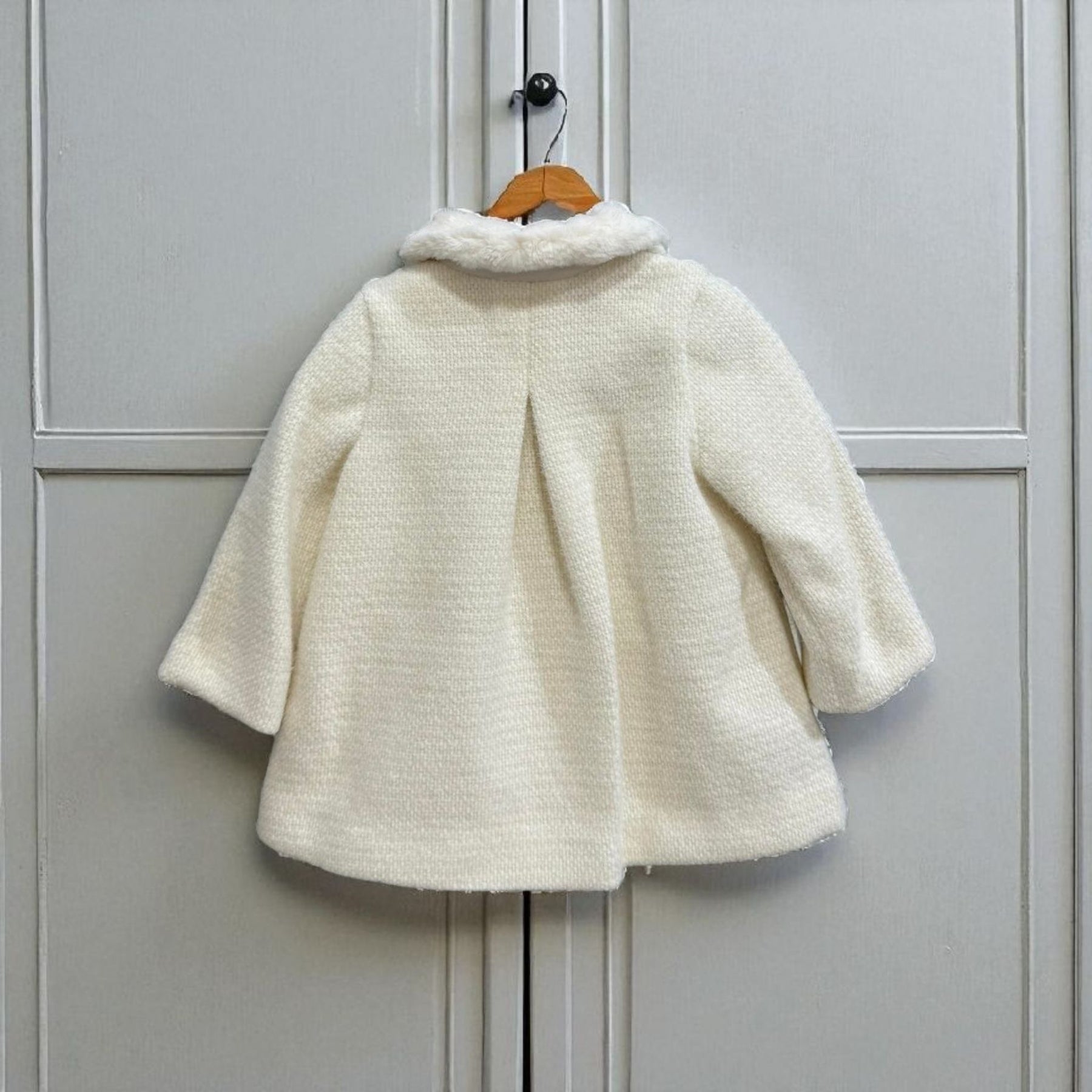 Abel & Lula Ivory Knit Coat with Faux Fur Collar for Baby Girls.